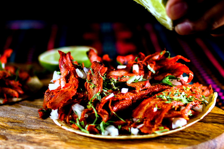 Na Rota do Tacos, abre com um pedaço de carne de porco sendo fatiado. Em seguida, corta para uma cena de um taco de dar água na boca: uma cama macia e quente de tortilla se abre com apetitosos pedaços de carne sobre ela.
